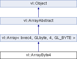 Inheritance diagram for vl::ArrayByte4:Additional Inherited Members | |