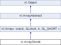 Inheritance diagram for vl::ArrayShort4:Additional Inherited Members | |