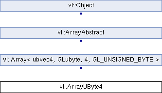 Inheritance diagram for vl::ArrayUByte4:Additional Inherited Members | |