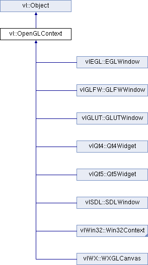 Inheritance diagram for vl::OpenGLContext:Public Member Functions | |