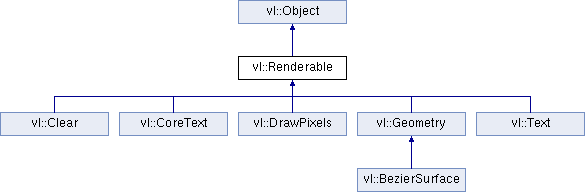 Inheritance diagram for vl::Renderable:Public Member Functions | |