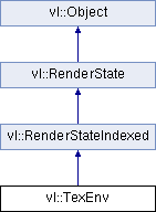 Inheritance diagram for vl::TexEnv:Public Member Functions | |