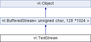 Inheritance diagram for vl::TextStream:Public Member Functions | |