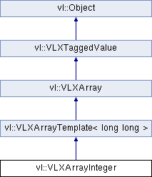 Inheritance diagram for vl::VLXArrayInteger:Public Member Functions | |