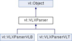Inheritance diagram for vl::VLXParser:Public Member Functions | |