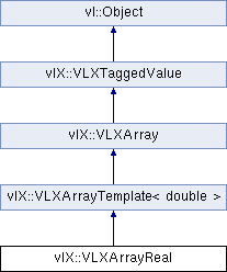 Inheritance diagram for vlX::VLXArrayReal:Public Member Functions | |