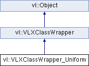 Inheritance diagram for vl::VLXClassWrapper_Uniform:Public Member Functions | |