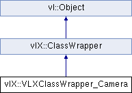 Inheritance diagram for vlX::VLXClassWrapper_Camera:Public Member Functions | |